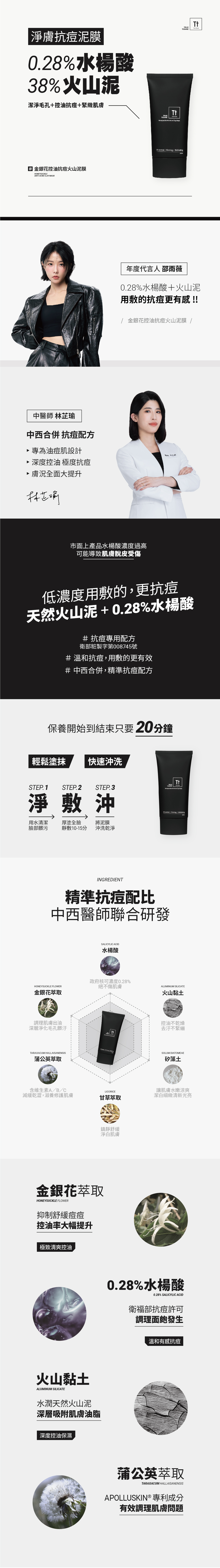 臉部清潔後,取適量泥膜,均勻薄敷全臉或T字部位,靜置10-15分鐘,用清水即可