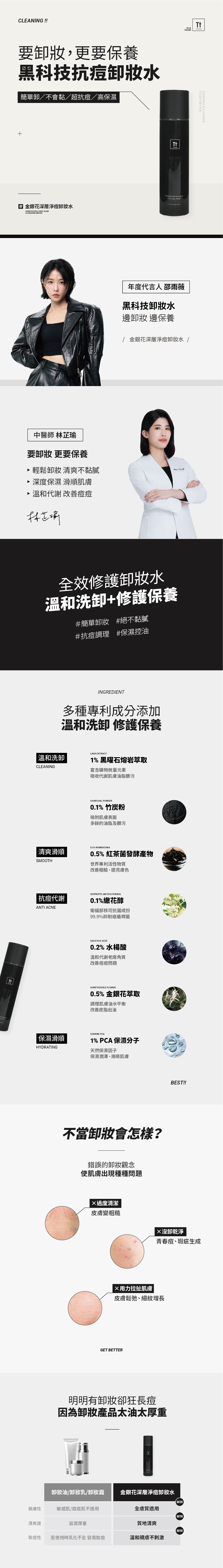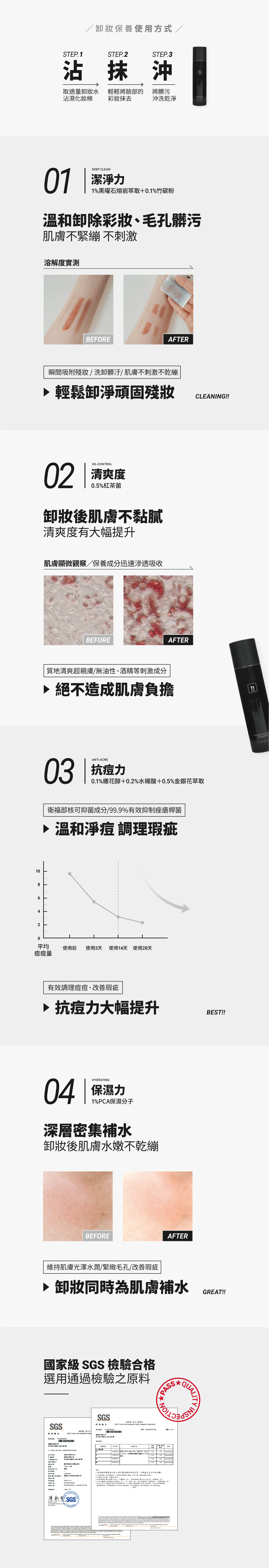 採用獨家創新黑科技卸淨配方,簡單、輕鬆卸除妝容及毛孔髒汙
