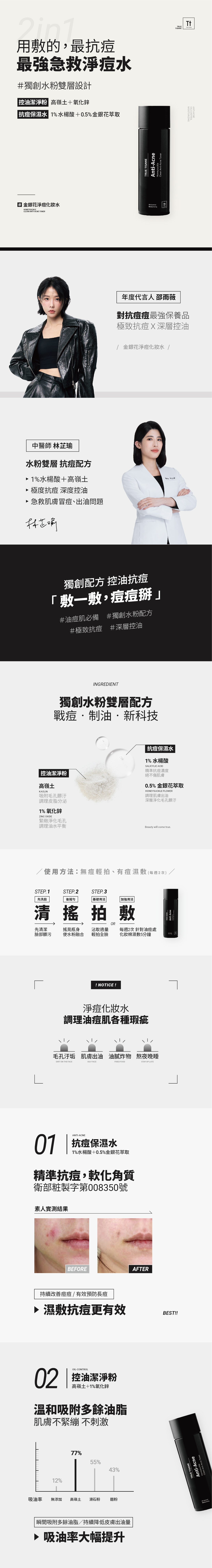 最強急救淨痘水,獨創水粉雙層設計:控油潔淨粉+抗痘保濕水,用敷的,最抗痘。