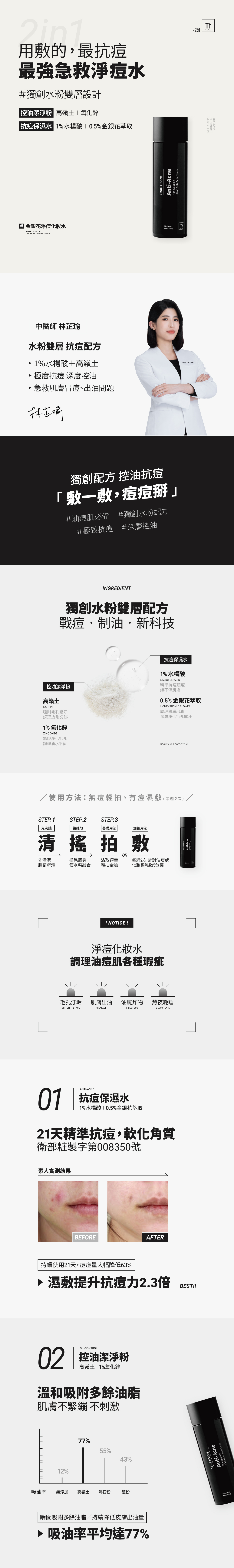 最強急救淨痘水,獨創水粉雙層設計:控油潔淨粉+抗痘保濕水,用敷的,最抗痘。