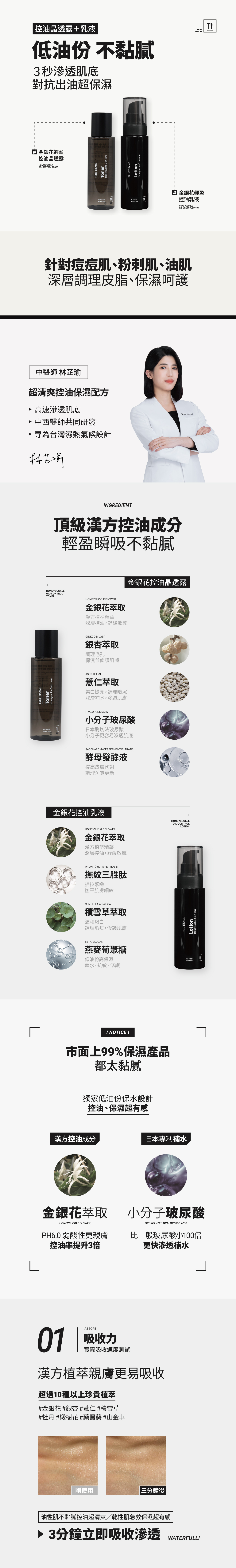 金銀花輕盈控油晶透露是化妝水也是精華液。高純度、好吸收、無負擔、不粘膩,天然酵母萃取,提亮、潤膚、控油。